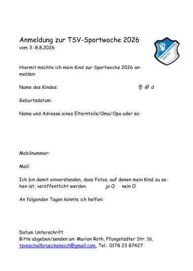 Kosten für die Sportwoche: 20 € Vereinsmitglieder, 30 € für Nichtmitglieder
